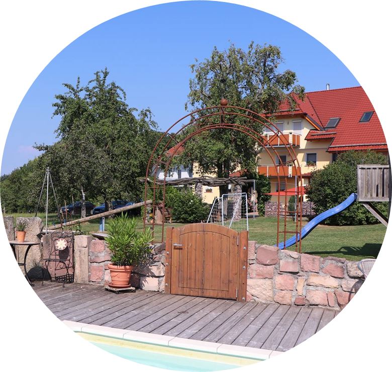 An der Kreuzung fahren Sie rechts ab (Schild: Ferienhof Bührer). Nach ca. 200, sind Sie bei uns angekommen.